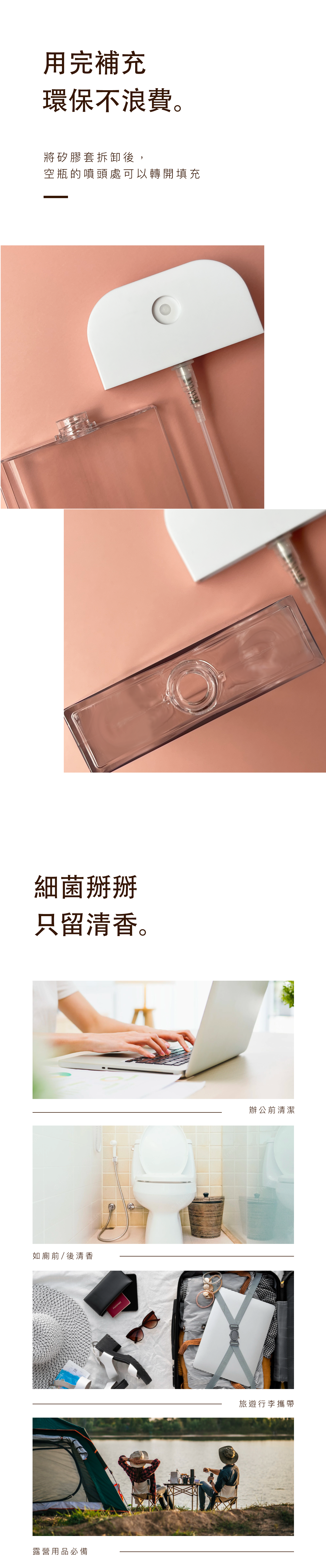▪ 環保可補充:使用完畢後,瓶子可補充酒精/香氛等,重複利用好環保!