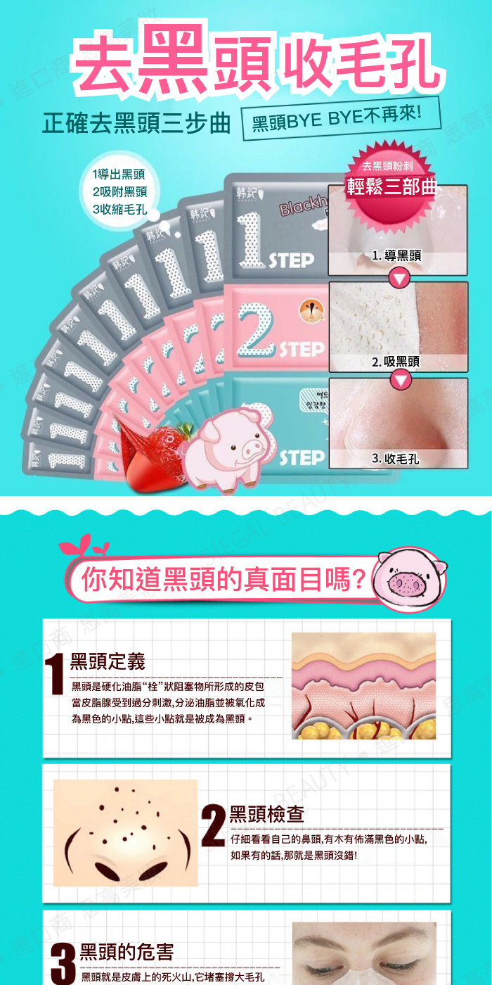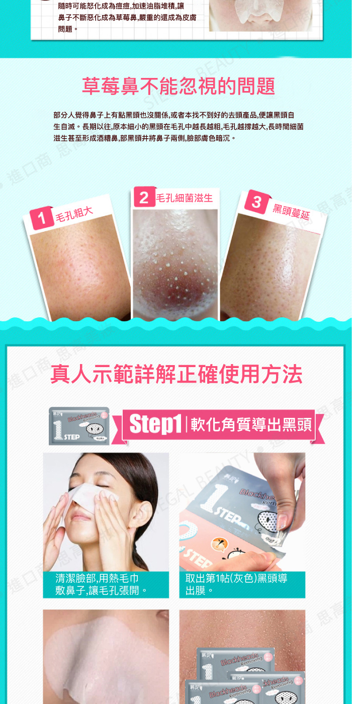 10~15分鐘鼻膜貼乾透,從鼻翼兩側慢慢將鼻膜貼撕開去除粉刺後,再用清水清洗鼻頭擦