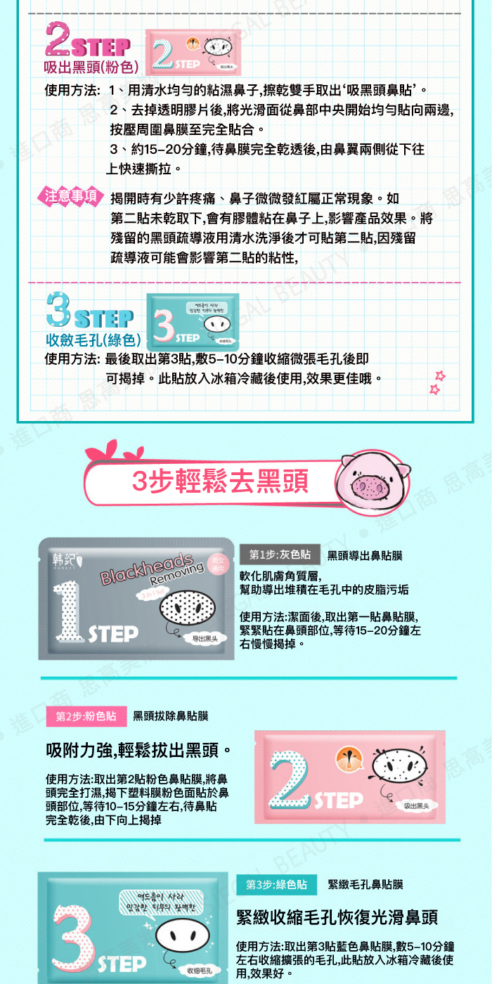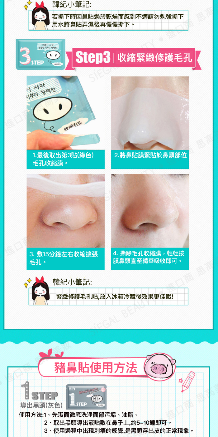 第三步:取出第3片「毛孔細緻保濕鼻膜」,敷於鼻部10~15分鐘左右,待保濕精華液完全吸收。
