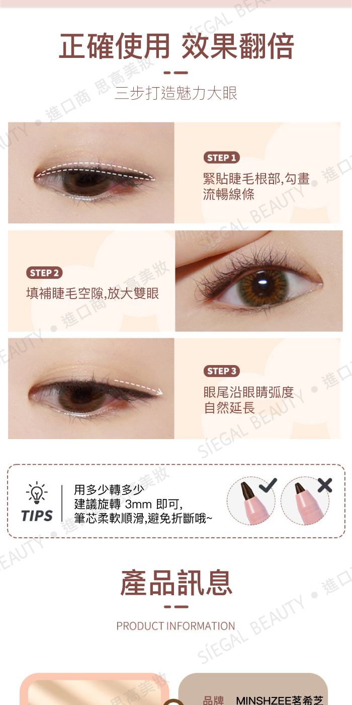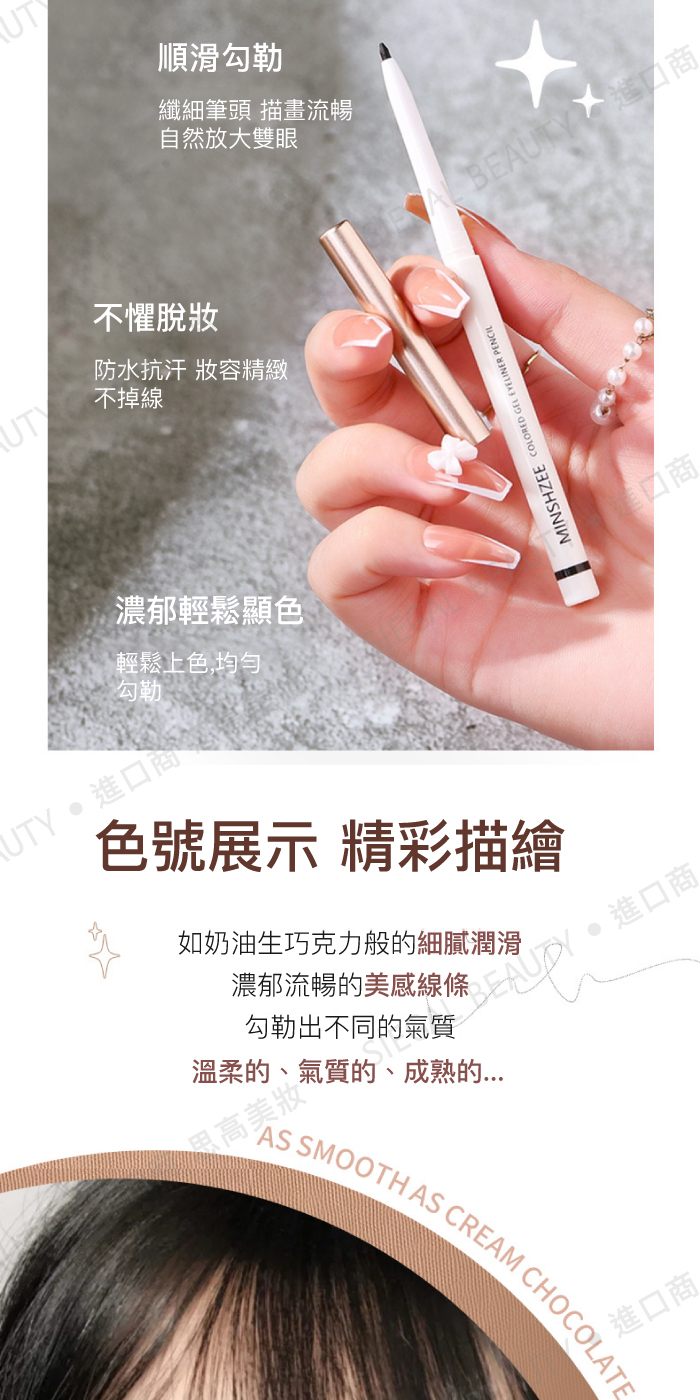 使用方法:打開筆蓋,在眼角或臥蠶區輕塗,呈現自然妝效。