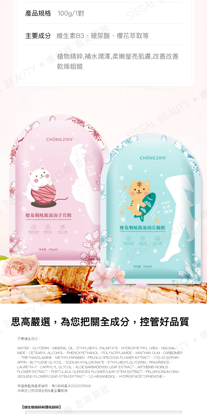 品名:櫻花B3滋潤手臂膜H-602