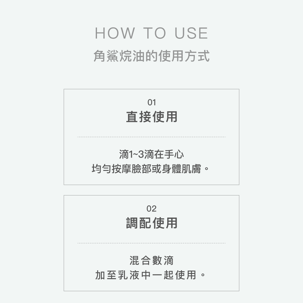 使用方式:可單獨使用,滴1~3滴在手心,均勻按摩臉部或身體肌膚;或混合數滴至乳液中一起使用。
