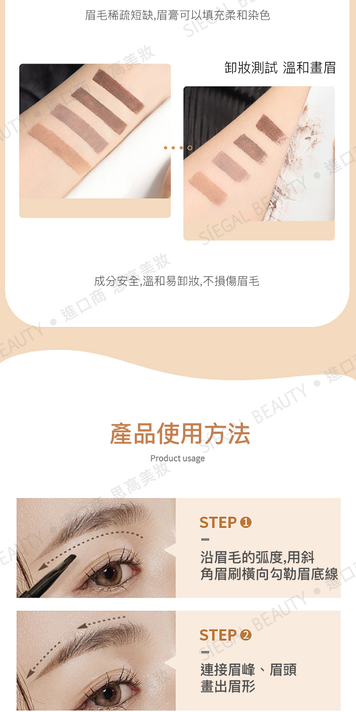 使用方法:用刷毛取適量眉膏,輕輕刷至眉毛。