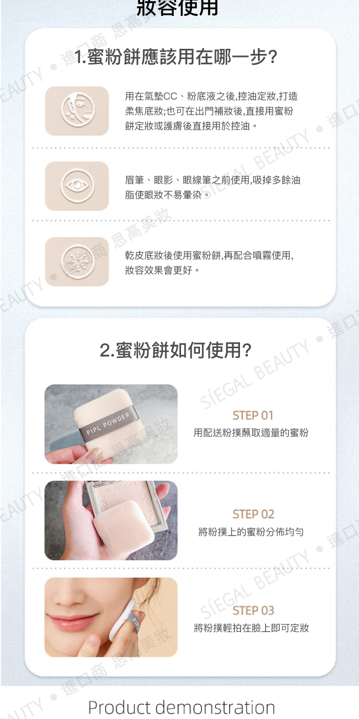 使用方法:沾取適量粉餅,均勻塗抹於臉頰處。