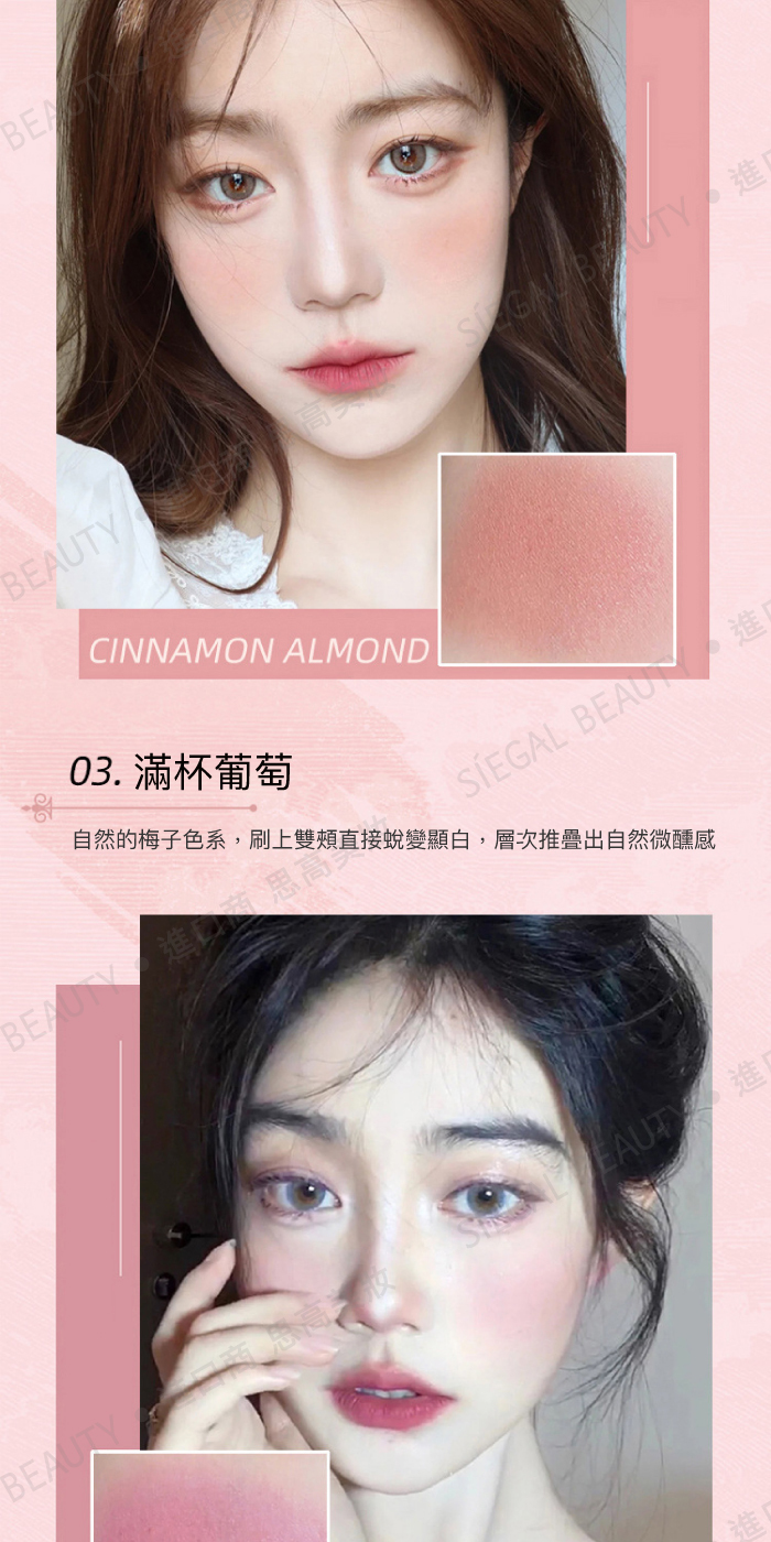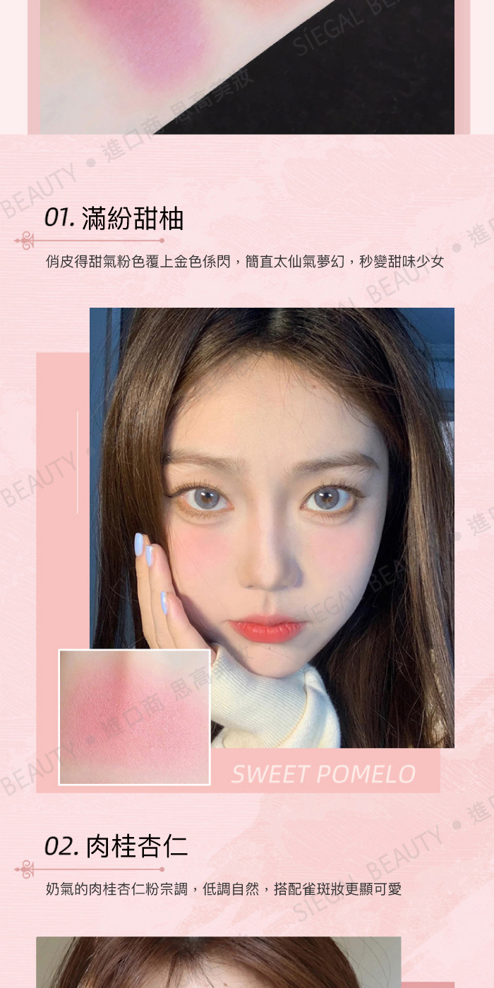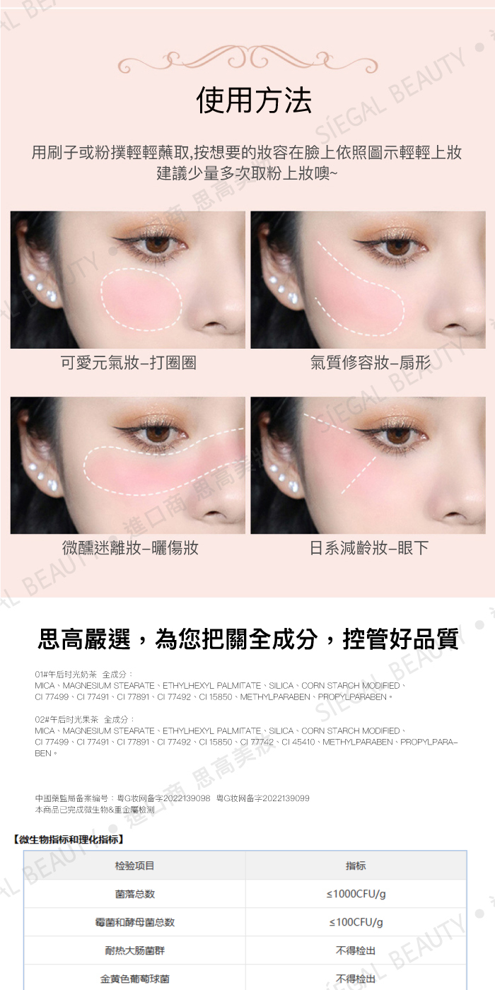 使用方法:沾取適量粉餅,均勻塗抹於臉頰處。