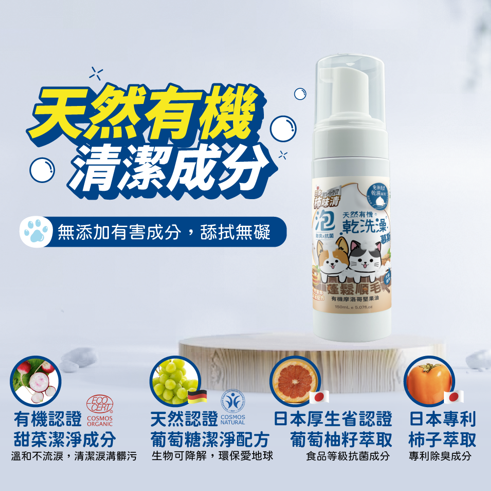 品名:天然有機乾洗澡慕斯〔護毛對策〕〔犬貓適用〕舔食無礙