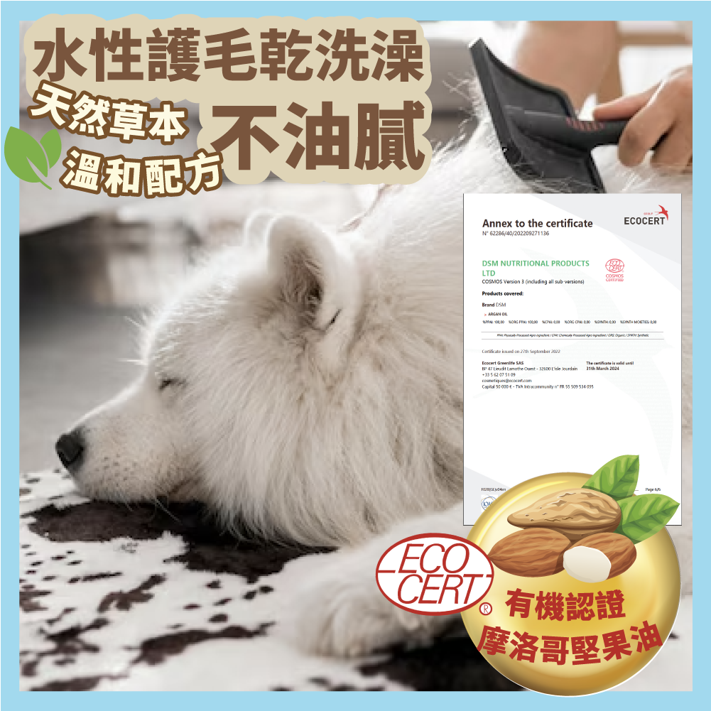 台灣思高專業研發團隊,採用歐盟ECOCERT有機認證甜菜潔淨成分及歐盟COSMOS天然認證葡萄糖潔淨成分,專為毛孩肌膚設計pH6~7中性配方,可溫和洗淨不乾澀,搭配日本除臭專利柿子植萃及日本食品級柚籽抗菌植萃,可分解毛孩身上的臭味,同時改善毛孩皮膚黴菌問題,搭配有機認證摩洛哥堅果油,強化毛髮熱損、柔亮順毛,採用COA、SDS認證天然草本植萃原料成分溫和,無添加苯氧乙醇、Paraben防腐劑,寵物舔舐安心。