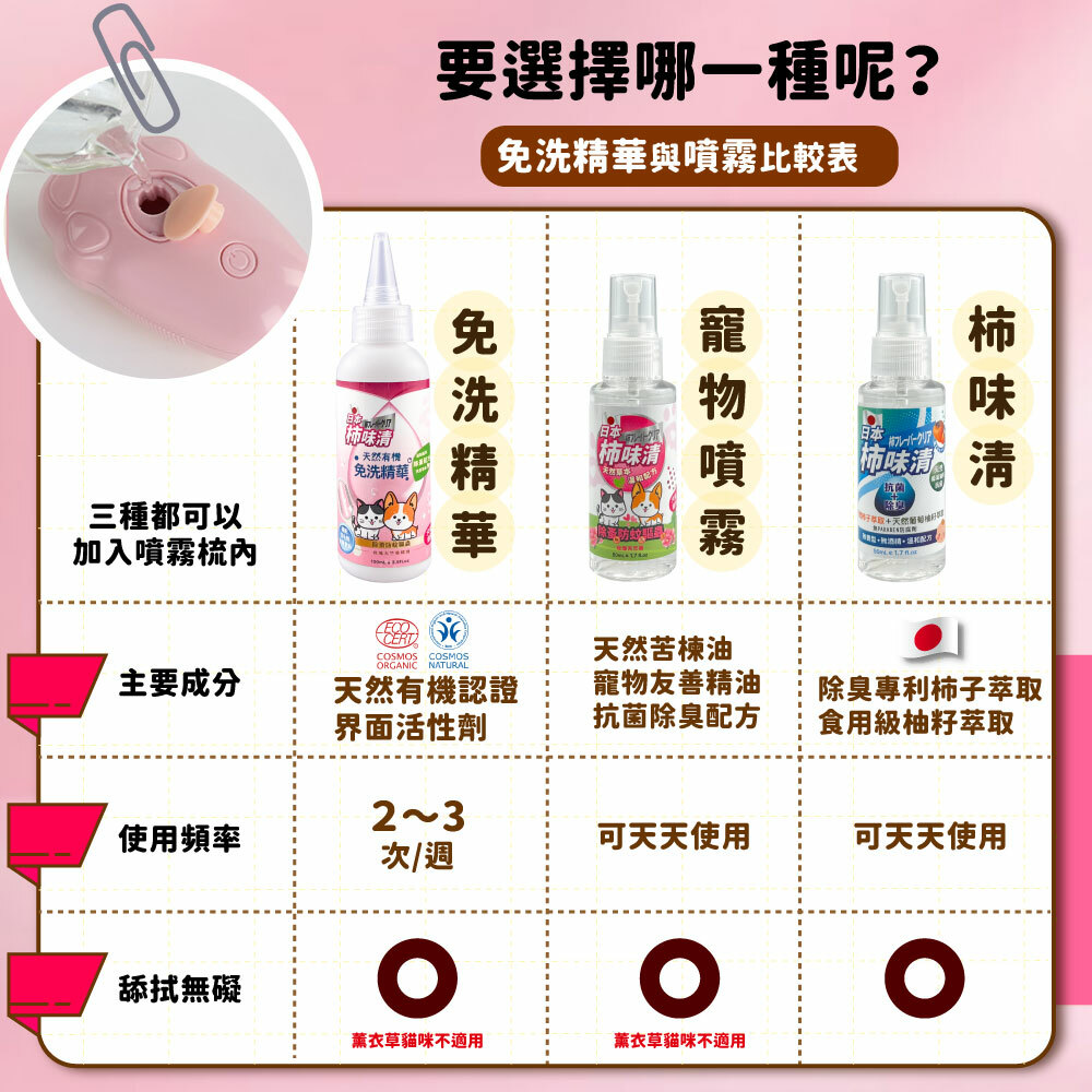 可搭配思高研製的柿味清系列各式寵物專用清潔液