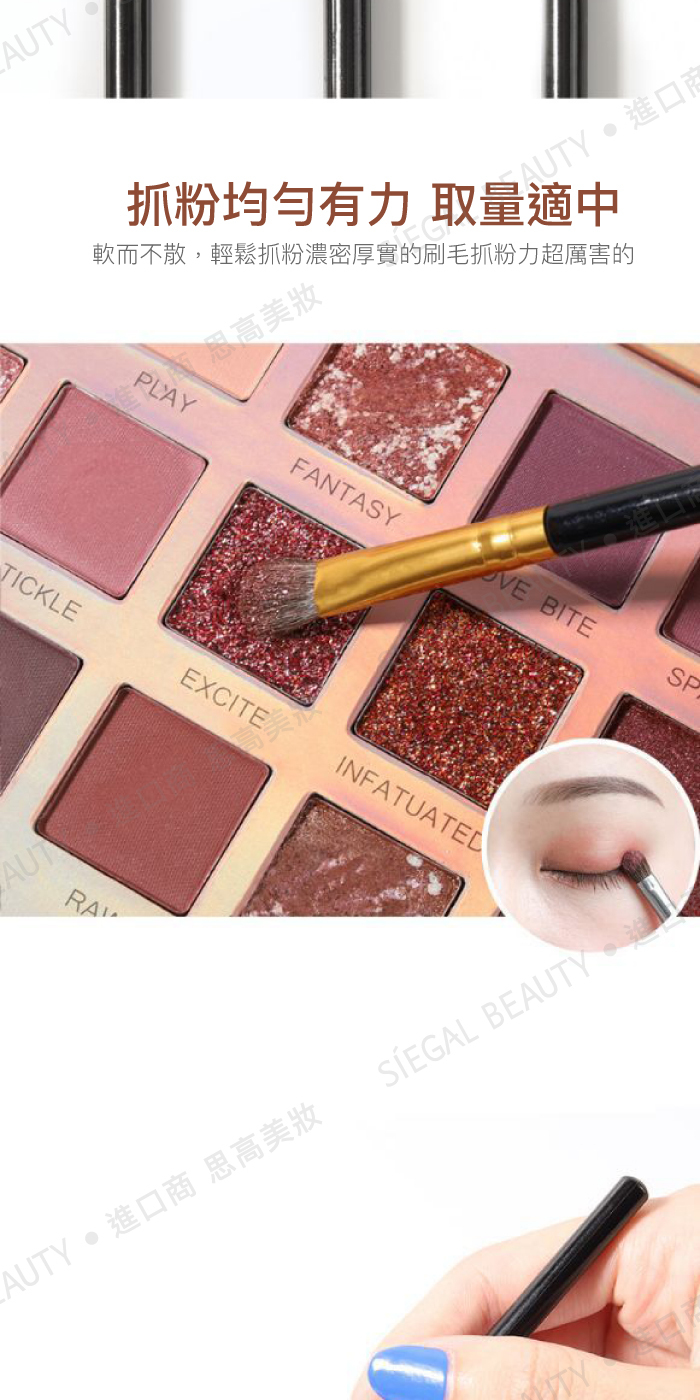 沾取適量彩妝後,均勻塗至臉上,上色服貼,軟糯不掉毛,自然不留刷痕!