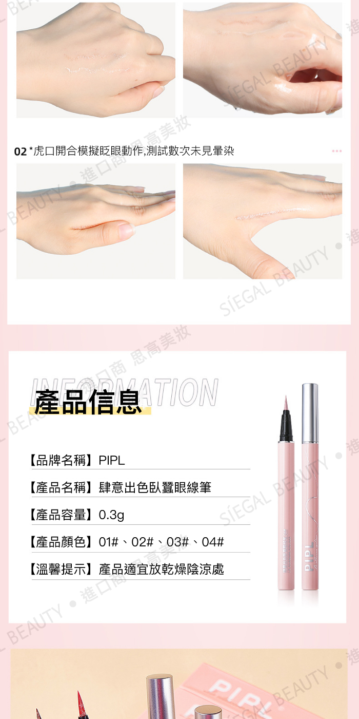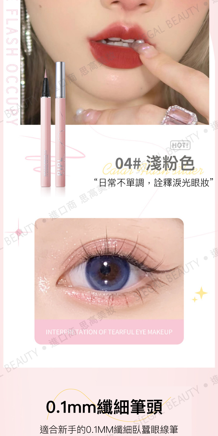 使用方法:打開筆蓋,在眼角或臥蠶區輕塗,呈現自然妝效。