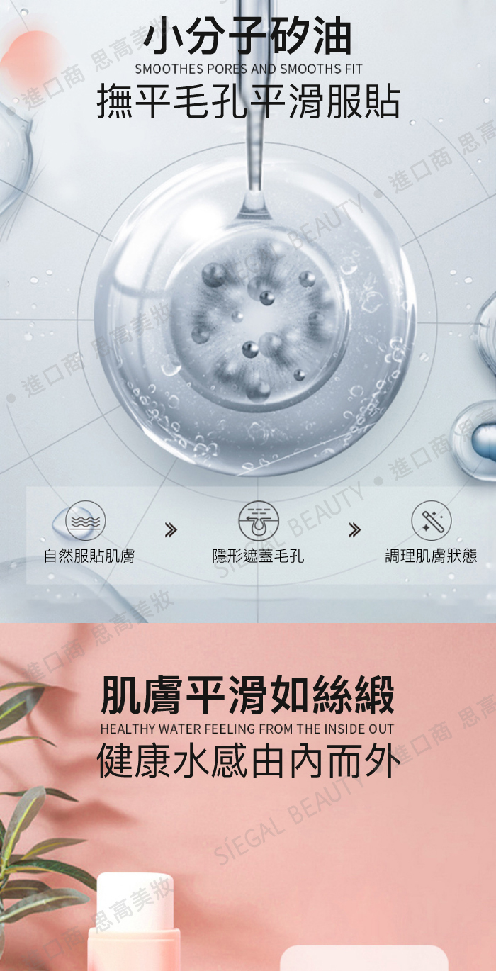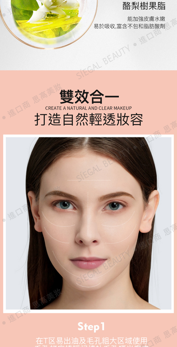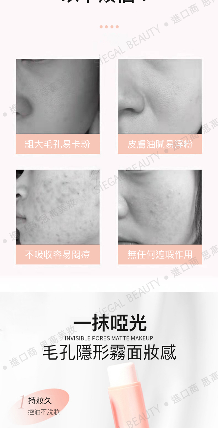 自然服貼肌膚,控油持妝,隱形遮蓋毛孔,質地細膩不黏膩